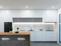 Es gibt ein offenes Layout zwischen dem Wohnzimmer und der Küche, die zum Gefühl der Geräumigkeit beiträgt.