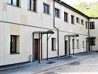 Layout - Büro. Versorgung und Entlüftung. Zentrale Klimaanlage. Strom: 100 kW. Internet, Telefonie. Sicherheit. Videoüberwachung. Zugangskontrolle. Tiefgarage.