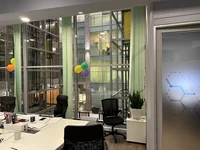 Versorgung und Entlüftung. Zentrale Klimaanlage. Feueralarm. Elektrische Leistung: 100 kW. Internet, Telefonie. Sicherheit. Videoüberwachung. Zugangskontrolle. Aufzug: 6, Otis. Parkplatz.