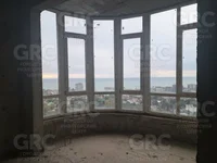 Die Wohnung ist Eckwohnung, drei Fenster, offener Balkon, zwei Loggien mit Panoramafenstern, geplant für zwei Zimmer und eine Küche, eventuell eine Wohnküche.