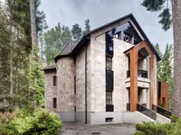 The residence with 5 bedrooms are built on 30 acres with an area of 30 acres. The facade of the house in the European style of an individual project is lined with natural stone.
