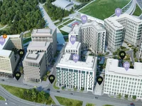 Wohngebäude 6-7, 9-12 und ein Bürogebäude (Gebäude 8) basieren auf einem einzigen dreistöckigen unterirdischen Stylobat. Es wird technische Zimmer, Parkplätze und eine Autowäsche beherbergen. Gemeinsame Räumlichkeiten sind in Zonen unterteilt in: Rezeption; Lifthallen; Kolyasochny; hygienische Bereiche, in denen Sie Ihre Pfoten nach einem Spaziergang mit Tieren waschen können.