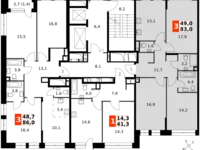 Maximale Rabatte bei 100% Zahlung. Der Fall wird übergeben! Direkter Verkauf vom Entwickler! Premium Wohnanlage. 3-k Wohnung Nr. 88 wird in einem gemieteten Gebäude mit einer Gesamtfläche von 82,9 qm im 20. Stock eines 20-stöckigen Gebäudes verkauft. Besonderheiten: