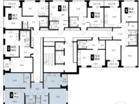 Zum Verkauf 3-k Wohnung No424 mit einer Gesamtfläche von 74.5 qm im 11. Stock eines 16-stöckigen Gebäudes. Whitebox Trimm.