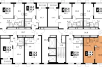 2-k Wohnung No516 mit einer Gesamtfläche von 53,4 qm im 23. Stock eines 24-geschossigen Hauses. Keine Fertigstellung.