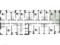 Zum Verkauf 1-k Wohnung Nr. 748 mit einer Gesamtfläche von 41,5 Quadratmetern im 7. Stock eines 24-geschossigen Hauses. Whitebox Trimm.