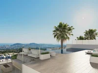 Each villa is built on 2 floors, 4 bedrooms and 5 bathrooms, private parking. They also have a solarium and an interior garden with a basement. Each villa has its own elevator. The solarium offers a wide and unforgettable view of Benidorm and the sea.