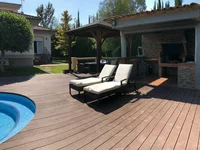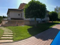 La villa de 450 m2 es amplia y majestuosa, situada en una parcela de 1500 m2 con piscina particular, jardin con cesped natural y barbacoa.