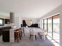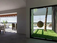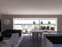Corner plot, has 3 bedrooms and 2 bathrooms, a large open plan kitchen diner and living room which connects to the outdoor pool area via large glazing which is hidden within the walls when closed , which allows a seamless transition to the outside.
