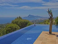 Beschreibungluxurious, Designervilla in einem privilegierten Gebiet der Costa Blanca, der Stadt Altea, mit atemberaubendem Blick auf das Meer und die Berge, 1,400.000 Euro. Das mediterrane Meer-ein wünschenswerter Ort für diejenigen, die einen luxuriösen Lebensstil schätzen. Die Orientierung der Villa ist Süd / Südwest-Die Aussicht auf das Mittelmeer ist wirklich atemberaubend. Geschmack. Die Zimmer der Villa sind groß mit sehr hohen Decken, einschließlich eines Wohnzimmers mit großen Erkerfenstern und einem atemberaubenden Panoramablick auf die Bucht und das Meer.Voll ausgestattete Gourmetküche und Essbereich. 4 Schlafzimmer (Hauptschlafzimmer mit Sitzbereich), 4 Badezimmer (mit Dusche und Badewanne), 2 Gasttoiletten und Dusche, Ankleidekabine, Arbeitszimmer, Waschküche, Terrasse, getrennte schöne Gastwohnung mit eigenem Eingang zur Villa (auf dem zweiten Level, besteht aus 2 großen Schlafzimmern, jedem Bett mit eigenem Bad und einem privaten Terrassen mit Zugang zum Villa). 4 Parkplätze (Garage mit automatischen Toren und Parkplätzen), bedeckte und offene Terrassen. Subtropischer Garten mit landschaftlichen Bereichen und automatisierten Bewässerungs- und Beleuchtungssystemen, bequemen Sitzbereichen und einem Grillbereich, einer Sommerküche im Freien, einem Infinity -Pool mit einer Welleninstallation und einem Wasserreservoir.