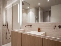 The apartment boasts highest quality finishes and installations: Italian travertino flooring, under floor heating throughout, oak flooring, domotic system, integrated sonos sound system, Miele appliances.