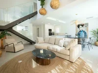 Auf einem Grundstück von 446 Quadratmetern befindet sich eine neue moderne Villa in der Stadt Finestrat House. m. mit einem grünen Bereich für Picknick und Erholung, eigenem Schwimmbad und Parkplatz. Die Villa mit einer Fläche von 159 qm. m. hat ein helles Wohnzimmer mit offener Küche, drei Schlafzimmer, drei Bäder, eine geräumige Terrasse mit Panoramablick auf die Umgebung. In der Nähe der Villa gibt es alle notwendigen Dienstleistungen für den Alltag: Einkaufszentrum, Geschäfte, Apotheken, Verwaltungsbüros, Banken, Schule, Erholungsgebiete und Parks, medizinisches Zentrum, Bushaltestellen. Der historische Teil von Finestrat liegt nicht weit vom Resort von Benidorm, etwa 3 Kilometer vom Meer entfernt, auf einer Höhe von 238 Metern über dem Meeresspiegel und wird von ihm durch die Sierra Cortina Bergkette getrennt. In der eher komplexen Landschaft der Ausläufer gibt es malerische kleine Parks, der gigantische glockenartige Berg Puig Campana dominiert das historische Zentrum auf einer Seite, und in Richtung Meer und Benidorm gibt es Blick auf die Villen von Grün umgeben. Coastal Finestrat ist eine ruhige und grüne Gegend, wo Sie eine ziemlich ruhige Erholung genießen können, mit zahlreichen Spielplätzen, Sportanlagen und Schwimmbädern auf dem Gebiet der privaten Villen der bizarren Architektur und geschlossenen Hotelkomplexe.