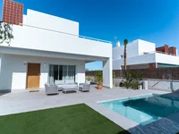 Wir präsentieren eine komfortable separate Villa in einem schönen modernen Wohnkomplex in Pilar de la Horadada. Pilar de la Horadada ist eine ruhige spanische Stadt an der Mittelmeerküste. Es ist Teil der Provinz Alicante im südöstlichen Teil von Spanien. Der ruhige und gemessene Lebensrhythmus zieht diejenigen an, die Trost und Stille schätzen. Aufgrund der Tatsache, dass Schulen, Einkaufszentren, Restaurants, Apotheken, Bushaltestellen in der Nähe sind, ist diese Gegend ideal für das ganze Jahr über zu leben und zu mieten. Ein großartiger Ort für ein angenehmes Leben oder Ruhe. Der gated Komplex besteht aus 17 separaten Villen, von denen jeder seinen eigenen Garten, Schwimmbad, Solarium und Parkplatz hat. Das Haus besteht aus zwei Ebenen. Im ersten Stock gibt es ein Wohnzimmer, Esszimmer und Küche, Bad und Schlafzimmer. Es gibt Zugang zum Pool. Im zweiten Stock befinden sich zwei Schlafzimmer mit Badezimmer und eine Terrasse von 19.21 qm. Es gibt Zugang zu einem Solarium im Korridor. Die Fläche des Hauses beträgt 233.94 qm. Solariumfläche beträgt 36,61 m2. Der Preis beinhaltet: komplette Badezimmer mit Fußbodenheizung, möblierte Küche, Vorinstallation der Klimaanlage, Einbauschränke, elektrische Jalousien, Duschwände. Bei der Konstruktion und Dekoration des Hauses werden nur hochwertige Materialien verwendet. Schöne Villa, ideal für diejenigen, die ein kompaktes, stilvolles Haus suchen, in einer guten Gegend, in der Nähe aller Arten von Annehmlichkeiten und Dienstleistungen. In der Nähe gibt es alle notwendigen Annehmlichkeiten: Einkaufszentrum, Geschäfte, Restaurants, Sportzentrum, medizinische Dienstleistungen, Apotheken, Banken, Bushaltestellen und Parks. Entfernung zum Meer - 2.6 km. Eine schöne Villa, ideal für diejenigen, die ein schönes, stilvolles Haus suchen, in einer prestigeträchtigen Gegend, in der Nähe aller Arten von Dienstleistungen. Mögliche Online-Reserve sowie Kauf auf Kredit mit 36%. Kaufen Immobilien in Spanien, können Sie eine Aufenthaltserlaubnis erhalten. Unser Unternehmen hilft, eine Aufenthaltserlaubnis für jeden Typ auszustellen.