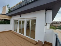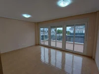 The property has 3 bedrooms with fitted wardrobes, two bathrooms (1 en suite), independent kitchen with high and low furniture, living-dining room with huge glass doors leading out to a large terrace with unobstructed views. It is newly painted and ready to move in. Semi-new building, from 2009, all the facade and railings of the urbanization have been recently painted. The urbanization has green areas, children's garden, spa area, gym and communal swimming pools. Property for sale in the residential Lomas del Carabassi, situated next to the sports centre and the street market area.