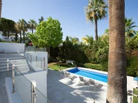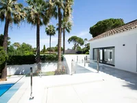 Entdecken Sie dieses herrliche Anwesen im Herzen des Nueva Andalucía Golf Valley, umgeben von renommierten Golfplätzen wie Las Brisas, Los Naranjos und Aloha. Es verfügt über 4 Schlafzimmer mit eigenem Bad und bietet eine Reihe von beeindruckenden Annehmlichkeiten. Im Erdgeschoss werden Sie von einem geräumigen Wohnzimmer mit einer Gästetoilette und dem prächtigen Hauptschlafzimmer mit eigenem Bad und Ankleideraum begrüßt. Zusätzlich finden Sie ein weiteres Schlafzimmer mit einem Badezimmer und eine voll ausgestattete moderne Küche. Von dieser Etage aus können Sie auf zwei große Terrassen zugreifen, die einen spektakulären Blick bis zum unteren Teil bieten, wo der Außenpool von üppigen tropischen Gärten umgeben ist.