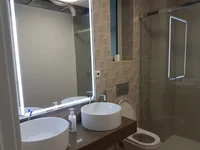 Die Innenräume der Wohnungen sind entworfen, um Platz und natürliches Licht zu maximieren. Mit einer konstruierten Fläche von 79 m2 und 57 m2 nutzbare Fläche, jede Wohnung hat 1 Schlafzimmer und 2 Badezimmer. Das offene Wohnzimmer ist in die Küche integriert und schafft eine geräumige und helle Umgebung. Hochwertige Oberflächen und moderne Technologien wie das energiesparende Robotersystem und die Ferntüröffnung sorgen für eine komfortable und effiziente Umgebung. Die Wohnungen sind mit großen Fenstern ausgestattet, die natürliches Licht einlassen, das Gefühl von Raum und Verbindung mit der Außenseite verbessern.