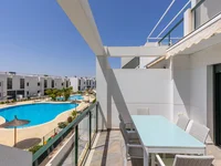 Diese moderne Wohnung befindet sich in der renommierten Gegend von Mil Palmeras, in Pilar de la Horadada, nur 400 Meter von den weißen Stränden des Mittelmeers entfernt. Die Wohnung befindet sich im obersten Stock eines zweistöckigen Gebäudes, das im Jahr 2020 gebaut wurde und Komfort, modernes Design und exzellente Lage vereint. Die Gesamtfläche beträgt 77,3 m2, darunter zwei Schlafzimmer, zwei Badezimmer, eine italienische Küche mit einer Bartheke und ein helles Wohnzimmer mit Zugang zu einer 12 m2 Terrasse mit Blick auf den gemeinsamen Bereich. Ein besonderer Vorteil der Wohnung ist ein privates Solarium von 30 m2 mit Meerblick, eine einziehbare Pergola und einen dekorativen vertikalen Garten - ein idealer Ort zum Entspannen und Genießen des Klimas. Die Immobilie wird komplett möbliert und ausgestattet verkauft, einschließlich Klimaanlage, privater Parkplatz und Aufzug. Der Wohnkomplex verfügt über zwei Gemeinschaftspools, Außensimulatoren, Erholungsgebiete und angelegte Gärten mit Palmen, die eine ruhige und gemütliche Atmosphäre schaffen. Mil Palmeras ist eine entwickelte Wohngegend, bietet alle notwendigen Annehmlichkeiten zu Fuß: Restaurants, Supermärkte, Einkaufszentren, sowie Strände mit der Blauen Flagge und das touristische Qualitätszeichen “Q”. Den Flughafen Alicante erreichen Sie nach nur 50 Minuten mit dem Auto, Unterhaltung und gastronomische Einrichtungen sind nur 5 Minuten entfernt. Dies ist eine gute Option für dauerhafte Wohn-und Ferienvermietung Investition.