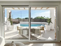 Der Innenraum der Villa ist so konzipiert, dass er maximalen Komfort bietet. Es verfügt über drei Schlafzimmer, so dass es perfekt für Familien oder Gastgäste. Die beiden Badezimmer sind mit modernen Ausführungen ausgestattet. Die Küche ist mit hochwertigen Geräten ausgestattet, was tägliche Aufgaben erleichtert. Die Klimaanlage sorgt für eine angenehme Temperatur ganzjährig. Fliesenböden aus Porzellan fügen eine elegante Note hinzu und sind leicht zu pflegen. Zusätzlich verfügt es über Einbauschränke, die den Speicherplatz optimieren. Die Sicherheit wird durch eine Video-Intercom verstärkt, die seinen Bewohnern Frieden des Geistes bietet.