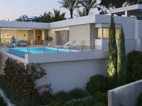 Konzipiert in offenen L-förmigen Modulen, umfasst die Villa den Hauptgarten, wo ein beeindruckender Infinity-Pool mit dem Meer verschmilzt. Ein nach außen offener Raum, der Sie einlädt, die Sonne und das mediterrane Klima zu genießen, aber so ausgerichtet, dass maximale Privatsphäre erreicht wird.