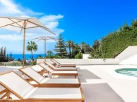 Diese prächtige Villa mit einer ausgezeichneten Lage in der Wohngegend von El Rosario bietet einen Panoramablick auf das Mittelmeer. Die Unterkunft wurde komplett eingerichtet und renoviert, um einen offenen Innen- und Außenlebensstil in einer charmanten Umgebung mit Pool, Grillplatz, Solarium, tropischen Gärten, Winterlounge, Saunabereich, türkischem Bad und Weinkeller zu bieten. Die Innenräume, hell dank der südwestlichen Ausrichtung der Immobilie, sind in einem zeitgenössischen Stil mit weichen Farben eingerichtet. Die Wohnräume sind auf zwei Ebenen verteilt. Auf dem Pool Ebene gibt es eine Wohnung mit 3 Schlafzimmern und zwei Bädern, von denen eines en-suite, 1 Gäste-WC, einen Außenbereich, einen SPA-Bereich mit Sauna, Türkisches Bad und Duschbad ist. Im oberen Stock der Villa befindet sich der Hauptwohnbereich mit zwei Schlafzimmern, einem großen Wohnzimmer, einem Esszimmer und einer offenen Küche mit Meerblick. Eine Terrasse mit einem Feuertisch, einem Weinkeller, einem Waschraum und einer Gästetoilette runden dieses Niveau ab. Darüber hinaus verfügt das Anwesen über einen Bungalow mit Meerblick im höchsten Teil des Gartens, umgeben von tropischen Pflanzen. Es kann als Büro, Fitnessraum oder in ein Schlafzimmer mit einem zusätzlichen Duschraum umgewandelt werden. Das Anwesen ist mit einer warmen und kalten Klimaanlage, Fußbodenheizung im Wohnzimmer und 2 Garagen ausgestattet. Es wird komplett ausgestattet und möbliert verkauft. Eine exklusive Immobilie mit spektakulärem Meerblick, in einer ruhigen und sicheren Umgebung, nur wenige Minuten von den schönsten Stränden von Marbella mit allen Annehmlichkeiten, Restaurants und Golfplätzen in der Nähe.