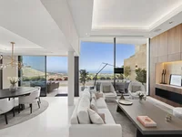 The spacious open-plan living and dining area flows into a designer kitchen equipped with Gaggenau and Miele appliances, perfect for high-end living. Floor-to-ceiling automated sliding windows open seamlessly to a large L-shaped terrace with outdoor lounge, dining space, and a summer kitchen—ideal for embracing Marbella’s renowned indoor-outdoor lifestyle.