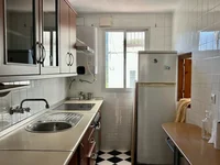 The house is set on an elevated ground floor of a building with only three apartments and features a private entrance. With a total of 75 m², it offers a separate kitchen connected to the living room through an open window in the wall. The living room also has access to a small extra room with a window, ideal as a study, guest bedroom or reading nook.