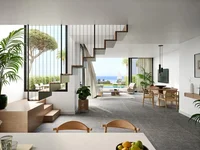 Die Innenräume bestechen durch präzise Verarbeitung und hochwertige Materialien. Feinsteinzeugfliesen verleihen den Räumen Eleganz und sind pflegeleicht. Vier Schlafzimmer und drei Badezimmer bieten Komfort für Familie und Gäste, und die großzügige Raumaufteilung ermöglicht eine flexible Nutzung je nach Bedarf. Moderne Küchen mit Einbaugeräten und Smart-Home-Systemen erleichtern den Alltag, Einbauschränke bieten viel Stauraum und eine Video-Gegensprechanlage sorgt für Sicherheit. Das Gesamtkonzept vereint Funktionalität und Ästhetik und schafft so ein Umfeld, in dem unvergessliche Momente entstehen.