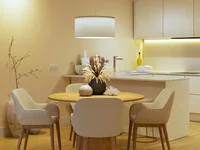 Die Innenausstattung besticht durch hochwertige Materialien und Liebe zum Detail. Die moderne Küche ist mit Einbaugeräten ausgestattet, die Bäder verfügen über elegante, eingelassene Armaturen, und die gesamte Wohnung ist mit strapazierfähigem Laminatboden versehen, der den Räumen eine einheitliche und warme Atmosphäre verleiht. Ein Luftwärmesystem und eine Klimaanlage mit verdeckten Luftkanälen sorgen für ganzjährigen Komfort. Optional kann ein Stellplatz mit Vorbereitung zum Laden eines Elektroautos sowie ein Abstellraum in der Tiefgarage erworben werden. Die Fertigstellung des Projekts ist für das [Datum einfügen] geplant. März 2028