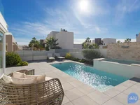 Komfortable Villa in Torrevieja, Spanien - US6829 3 Schlafzimmer, 2 Badezimmer. Teppichfläche: 143 m2. Grundstücksfläche: 405 m2. Solarium: 36 m2. Energieeffizienzklasse: B.New Build.Es gibt: privaten Pool, überdachte Garage, Parken, Balkon, Terrasse, Klimaanlage, Whirlpool, Kühlschrank, Waschmaschine, Herd, Fernseher, Mikrowelle, Zentralheizung, zentrale Stromversorgung, zentrales Wasserversorgungssystem, Einbruchalarm, Feueralarm. Es gibt ein Restaurant, Supermarkt, Krankenhaus, In der Nähe. Die Gegend hat eine gute Verkehrsanbindung. Die hervorragenden klimatischen Bedingungen und die entwickelte Infrastruktur machen Torrevieja zu einem idealen Ort für Ruhe und Daueraufenthalt.