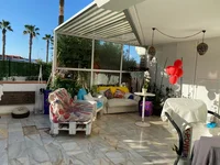 It has 2 bedrooms, one bathroom, a living room with open kitchen, big terrace with pool view.