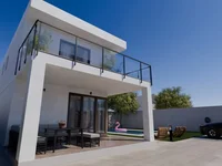 befindet sich die Villa auf dem Stück Land von der Fläche 270 Q. m das Haus mit einer Gesamtfläche von 150 qm besteht aus 2 Stockwerken, hat 2 Schlafzimmer und 2 Badezimmer, die Küche und das Wohnzimmer, die Treppe auf das zweite Stockwerk. Die Panoramafenster auf den Hauptfassaden sind so entworfen dass zulassen, die natürliche Beleuchtung im Laufe vom ganzen Tag zu erreichen.