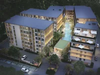 Die Anlage verfügt über 295 innovativ gestaltete Wohnhäuser mit 1-2 Schlafzimmern und Penthäusern mit 2-4 Schlafzimmern, mit voll ausgestatteten Wohnräumen, einschließlich Gourmetküchen, luxuriösen Bädern und geräumigen privaten Terrassen mit 2.000 qm kurortartigen tropischen Landschaften und Wasser-Features.