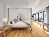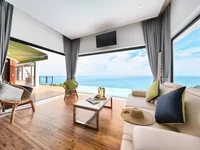 This stunning luxury villa on the southeast coast of Samui is situated directly above the water, next to Chaweng Beach. It is a unique architectural gem boasting excellent amenities and breathtaking views. Advantages include two panoramic pools, an outdoor jacuzzi, an ocean-facing gym, and a gourmet kitchen fit for connoisseurs.