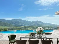 Eigenschaften des Komplexes: Landschaft (Hügel), Parkplatz, Videoüberwachung, 24/7 Sicherheit, Gartenblick, Bergblick.