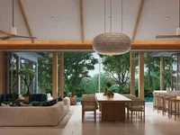 Exquisite villas embody modern tropical design. The project is available for residential and investment use, including unique 3-bedroom villas with private pools and an area of 435 sq.m. High levels of security and privacy are ensured by the CCTV system.