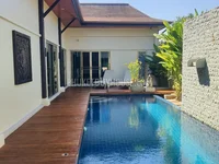 Surrounded by a tropical garden, the villa also offers a wide pool deck for relaxing or entertaining. Fully furnished in contemporary Thai décor, it is move-in ready.