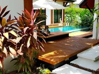 This modern oriental-style 3-bedroom pool villa offers a peaceful tropical retreat in a quiet residential area of Rawai, South Phuket. Nestled on a 360 sqm land plot with a built-up area of 203 sqm, the villa features a seamless indoor-outdoor layout, lush garden, and private swimming pool. This villa is perfect for a family residence or as a holiday rental investment. Designed with natural wood accents and Thai-inspired details, the villa includes a spacious open-plan kitchen, dining, and living area, leading out to a large wooden deck beside the pool. Two bedrooms have direct pool access, while the third ensuite bedroom is separated from the main house—ideal for guests or added privacy. Property Features: Price: THB 14,900,000 Land Area: 360 sqm Built-up Area: 203 sqm Bedrooms: 3 Bathrooms: 3 Swimming Pool: 3.3 x 7 m Ownership: Thai Freehold Furniture: Built-in furniture only Parking: 1 car View: Garden and pool Transfer Fees & Taxes: 50/50 shared Common Fee: None Year Completed: 2005 Highlights: Large open-plan layout with abundant natural light Fully equipped Western-style kitchen Laundry and storage room Private wooden poolside deck Surrounded by tropical garden Excellent privacy within a gated setting Location – Rawai, Phuket:Conveniently located near Rawai Beach, this villa is just minutes away from local markets, restaurants, and shops. Popular destinations such as Nai Harn Beach, Promthep Cape, and Chalong Pier are all easily accessible. With its peaceful surroundings and functional layout, this home is an excellent choice for personal use or long-term rental potential. Contact ThaiEstate today to arrange a viewing or more information of this private villa.