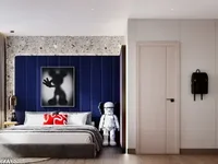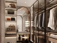 Bright and Airy Living in the Heart of WatthanaThis 91 sqm condo is seriously well laid out—two bedrooms, two bathrooms, and a nice open feel thanks to those large floor-to-ceiling windows that flood the space with natural light. You’ll probably spend most of your time in the main bedroom, which is spacious and comes with a walk-in closet equipped with glass-front cabinets and interior lighting, so organizing your wardrobe will be a breeze.The design is modern but comfy, with warm wooden floors and neutral, earthy tones that make the whole place feel calm and balanced. There’s a marble-topped desk area with a white cushioned chair, perfect for working from home or just catching up on your emails.Highlights include recessed ceiling lights, layered bedding with a padded headboard, and clever built-in shelves and storage solutions that keep everything clutter-free. The vanity table with its large mirror and decorative lighting is a nice touch if you like a dedicated space to get ready.It’s offplan right now, so there’s a fresh feel to it—freehold ownership is a bonus in this area. If you want contemporary style with practical features and lots of natural light in a lively neighborhood, this one’s worth seeing.