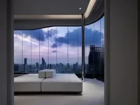 Unique Penthouse Central Phrom PhongThis is a sizable 444 sqm condo sitting on the 30th floor, with four bedrooms and four bathrooms, perfect if you want plenty of room to spread out or host guests. The open-plan living and dining area is really the heart of the home — with floor-to-ceiling windows and large folding glass doors leading to a beautifully curved balcony. You’ll probably spend a lot of time here, especially as the panoramic city views come alive at dusk.Design and FeelThe overall vibe is modern minimalist with a clean, neutral palette—think white walls, light wood flooring, and smooth, polished surfaces. Built-in wooden closets and work desks blend seamlessly into the space, keeping things clutter-free. The curved walls, arched doorways, and ceiling recesses add subtle architectural interest without feeling overwhelming.Practical FeaturesFour full bathrooms, each thoughtfully designed with sleek, floating vanities and quality fixtures like marble countertops and modern faucetsFunctional kitchen with white minimalist cabinetry, a kitchen island with a glossy countertop, integrated appliances including a dishwasher, and under-cabinet lightingBuilt-in bench seating and thoughtful lighting throughout, including recessed ceiling lights and ambient under-cabinet setupsAmple storage with built-in wardrobes featuring sleek handles, and wooden finish closet doorsIt’s urban living at its best—light-filled, spacious, and with great attention to detail. If you’re looking for a comfortable, stylish home with those unforgettable city views and thoughtful design touches, this one’s worth seeing.