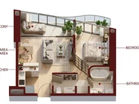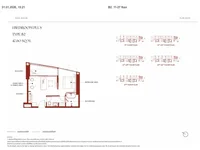 Wir bieten 1 Schlafzimmer Plus Typ, 47.60 m2 (für Böden 11–27). Die Wohnung ist erfolgreich abgegrenzt: das private Schlafzimmer ist vom gemeinsamen Bereich getrennt, und das Wohnzimmer ist mit dem Esszimmer kombiniert und hat Zugang zum Balkon.