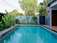The villa offers 4 bedrooms and 5 bathrooms. In addition, the layout provides privacy while keeping spacious common areas for daily living. The property includes a private swimming pool, landscaped garden, and a fully equipped kitchen with built in cabinetry. Furthermore, the home comes with air conditioning in every room, refrigerator, microwave, oven, washing machine, television, digital door lock, CCTV system, curtains, wallpaper, and a water tank with pump. Meanwhile, the solar cell system helps reduce long term electricity costs.