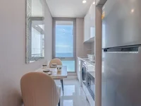 With a comfortable 29-square-meter layout, this modern residence has been thoughtfully designed to make efficient use of space while maintaining an open and airy atmosphere. The living area features large floor-to-ceiling windows that fill the room with natural light and showcase spectacular ocean views. The European-style kitchen is fully equipped with built-in appliances, while the cozy bedroom provides a peaceful retreat complemented by elegant furnishings and sea breezes from the private balcony.