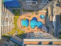 Das 3-Block-Projekt umfasst insgesamt 3.378 m² große Grundstücke. Durch die erhöhte Lage haben die Wohnungen oberhalb des 4. Stockwerks Meerblick. Das Projekt ist mit Innen und Außenschwimmbädern, Innen und Außenparkplätzen, Fahrradabstellplätzen, einem Kinderspielplatz, einem Generator, einem Landschaftsgarten, einem Sicherheitsdienst, Überwachungskameras, einem Kinosaal, einem Jacuzzi, einem Fitnesscenter, einem Spielzimmer, Gemeinschaftsbereichen, SPA, türkischen Bädern, Billard und Tischtennis ausgestattet. Jeder Block verfügt über doppelte Aufzüge.