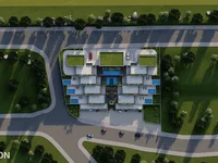 Im Inneren: Wir bieten zum Verkauf eine Wohnung mit vollem Finish, mit exklusiven Reparaturen aus hochwertigen Materialien. In allen Apartments werden große Panoramafenster, Küchensets, ausgestattete Badezimmer installiert. Zum Verkauf stehen Apartments des folgenden Layouts zur Verfügung: 18 Wohnungen 2 + 1, mit Terrasse oder Pool mit einer Gesamtfläche von 157-262 m2; 2 Villen mit einer Fläche von 174 m2.