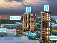 Ein neuer Wohnkomplex in der Gegend von Mezitli, Tedge Microdrikt. Der Komplex besteht aus 2 Blöcken mit 14 Stockwerken auf dem Gelände mit einer Gesamtfläche von 7626 m2