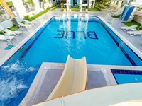 Möblierte ein Schlafzimmer Wohnung (1+1) mit einer Fläche von 68 m2, auf einem hohen Stock mit Blick auf die Berge und den Pool.