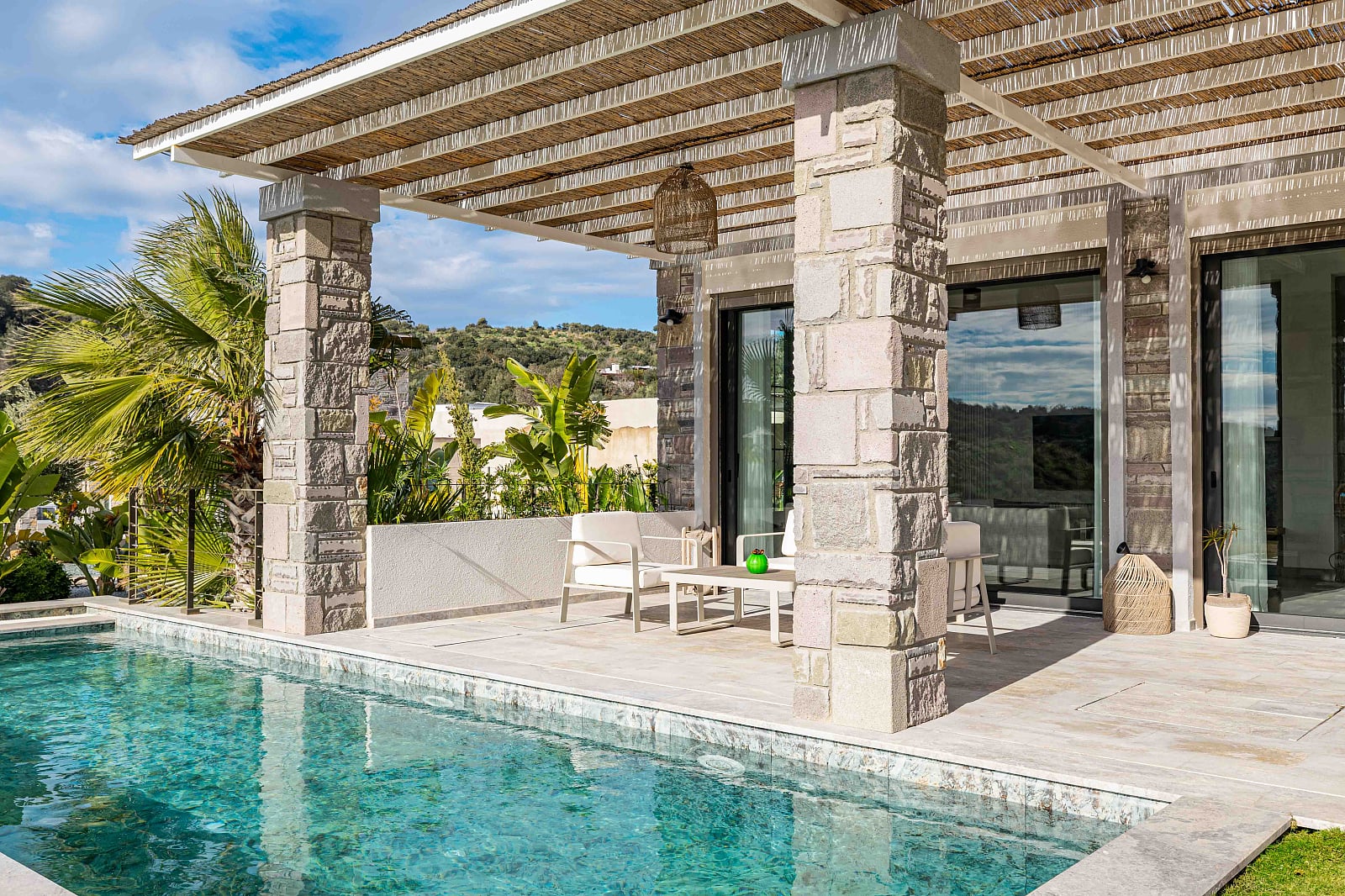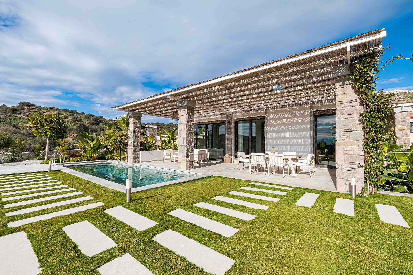 Das preisgekrönte Projekt wurde auf einem Gesamtgrundstück von 20.120 m² erbaut und umfasst 16 freistehende Villen mit jeweils eigenem Pool und Garten sowie 1.200 m² Grünflächen. Zehn der Villen verfügen über 5 Schlafzimmer, sechs sind 4-Schlafzimmer-Einheiten. Das Projekt umfasst 2-stöckige Villen mit 5 Schlafzimmern und 3-stöckige Villen mit 4 Schlafzimmern. Jede Villa verfügt über geräumige Wohnzimmer, hohe Decken, Fußbodenheizung, elektrische Rollläden, einen privaten Pool, einen privaten Garten und einen Parkplatz. Natursteinfassaden und hohe Holzgiebeldächer verleihen der Architektur einen einzigartigen Charakter. Mit teilweisem Meer- und Naturblick bieten diese Villen das ganze Jahr über ein ruhiges und komfortables Leben.