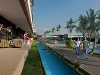 Designed by architect Cenk Doan, the project is located on a 10,720 m² site. The building is 195 meters long and 12 stories high. The project includes 174 apartments, including 1 office: • 1+1 — 87 m², • 2+1 – from 110 to 145 m², • 3+1 – from 163 to 186 m². All apartments are south-facing and have views of social areas. Our complex is located only 5 km from the world-famous Lara/Kundu hotels, 1 km from Antalya Airport - the center of tourism, 1 km from private schools and 4.5 km from shopping centers such as Mall of Antalya, Agora and IKEA. We offer free transportation to our private free beach, the airport and key shopping areas. We have taken into account all the details for your comfort. After purchasing, you'll be able to enjoy concierge services—from apartment cleaning and veterinary care for your pets to VIP car rental, hosting guests, and apartment rentals. Social amenities: 1. Lobby / Reception 2. Indoor parking (with 2 charging stations for electric vehicles) 3. Open parking 4. Tennis and basketball court 5. Pedestrian path 6. Meeting room and library 7. Fitness / Sauna / Steam room 8. Outdoor swimming pool 9. Indoor swimming pool 10. Water park 11. Children's playground 12. Mini-club 13. Private beach (free entry) 14. Free transfer (to the beach, airport and shopping centers) 15. Barbecue area 16. Television and satellite system 17. Playgrounds (bowling, billiards, darts, football, PlayStation, cinema) 18. 24/7 security and video surveillance system 19. Cafe and bar 20. Solar energy systems (part of the energy used in social areas will be produced by solar panels) 21. Medical office. Concierge services: 1. Guest reception services 2. Dry cleaning 3. Cleaning 4. Carpet cleaning 5. Maintenance 6. VIP transfer 7. Car rental 8. Courier service 9. Veterinarian 10. Doctor Building features: 1. Complies with seismic resistance standards 2. Complies with building control regulations 3. Complies with fire safety standards 4. Geological research was carried out 5. Generator 6. Installation of climate control 7. High-quality insulation 8. 2 stretcher lifts, 4 standard lifts Features of the apartment: 1. Built-in appliances (oven, hood, stove) 2. Cooling system (Split air conditioner) 3. Heating system (Electric boiler, heated floor (water system) 4. Aluminum systems in doors and windows, cabinets for the kitchen and bathroom, American doors (painted), floors 60*120 ceramic or similar, shower cabin, steel door.