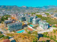 Möblierte Wohnung in einer naturnahen Anlage in Alanya. Die möblierte Wohnung in Alanya Oba liegt in einer naturnahen Anlage, nur 1,5 km vom Meer entfernt. Zur Ausstattung gehören ein Innen- und Außenpool, ein Fitnessstudio, eine Sauna und vieles mehr. AYT-04842