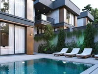 Die Villen wurden auf einer Projektfläche von 1.600 m² erbaut und verfügen über 5 Schlafzimmer und 1 Wohnzimmer sowie eine Küche, eine Waschküche, einen Balkon, eine Terrasse, einen großen Garten und einen privaten Außenpool im Garten. Die Villen wurden in moderner Architektur entworfen und sind sowohl von Waldgebieten als auch von laufenden und geplanten neuen Projekten umgeben. Die Villen, die über separate Eingänge verfügen, werden optional auch mit einer Ladestation für Elektrofahrzeuge ausgestattet. Die Villen werden mit unfertigen Innenräumen zum Verkauf angeboten, können aber auf Wunsch gegen einen Aufpreis auch bezugsfertig geliefert werden.